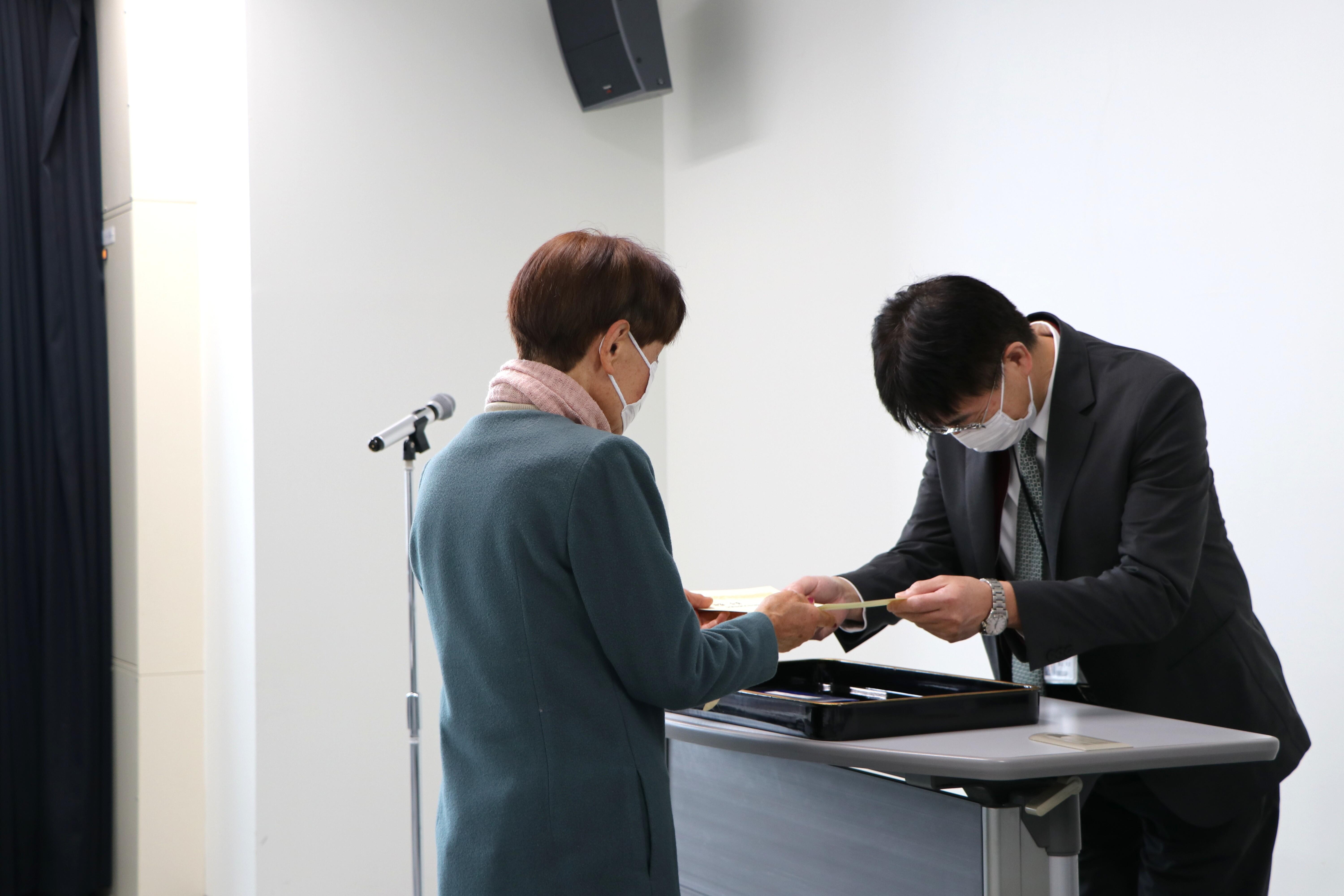 今年度の感謝状の贈呈者は、髙橋しな子さん(4,000時間達成)、三宅利幸さん(200時間達成)、千地陽子さん(200時間達成)の3名でした。