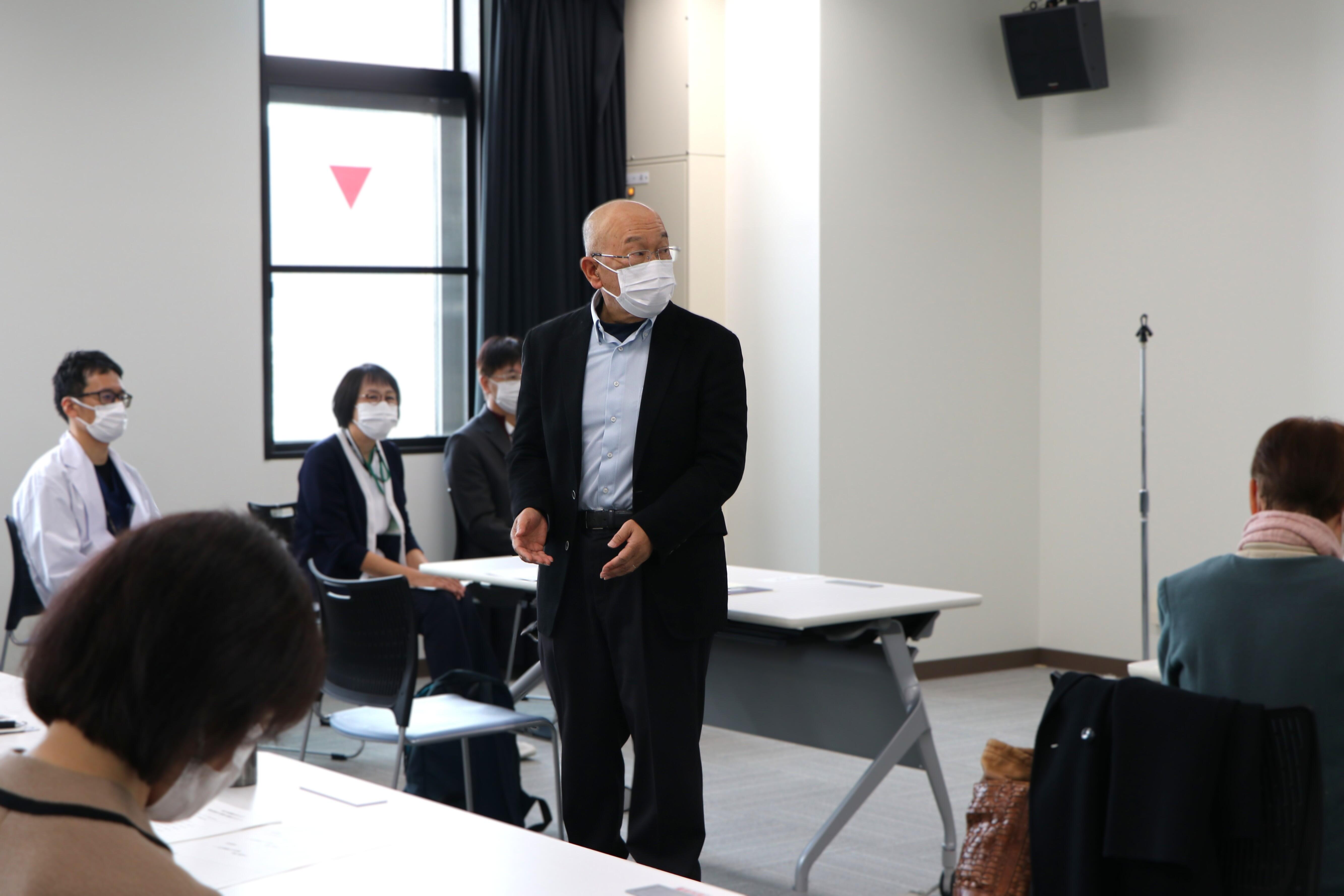 午後からの、ボランティア研修会では、サービスマネジメント担当の中口看護師を講師とし、「ボランティア活動における患者対応」について聴講しました。