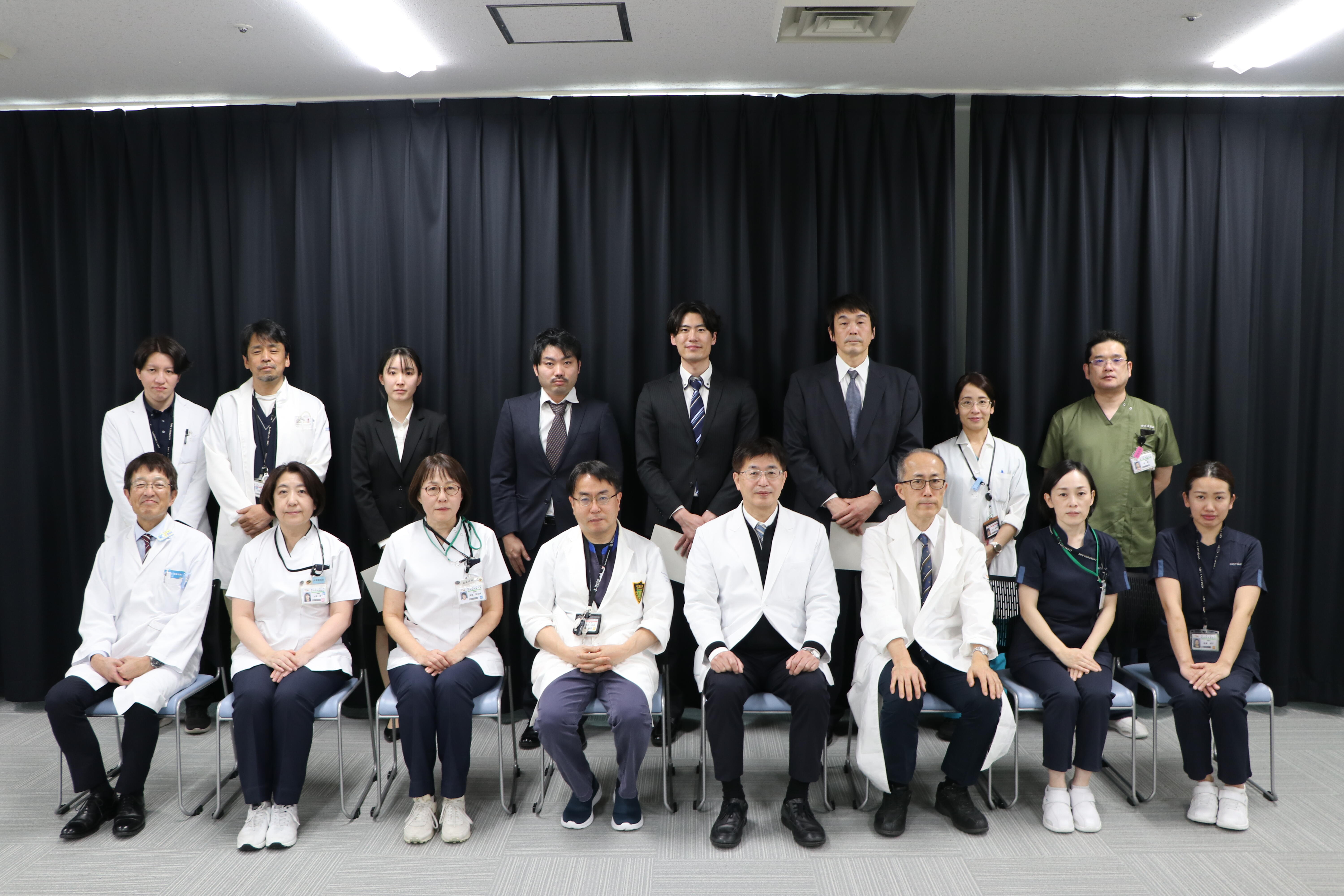 秋山病院長は「働き方改革もあり、特定看護師には期待すると同時に大きな役割を担ってもらうことになる。一人一人のキャリアアップの第一歩として、研修で得られた技術を、ぜひ看護業務の中で実践してほしい」、土井特定行為研修センター長は「特定看護師の力を借りる機会がこれからも増えていくので、大いに期待している。」と祝辞を述べました。