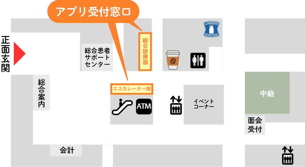 〈 岐阜大学病院1階 アプリ受付窓口 〉