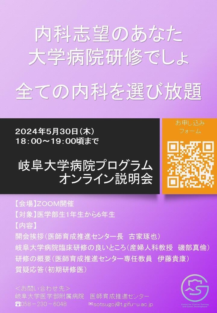 【給与アップ】5月30日18時〜19時 岐阜大学病院 初期臨床研修プログラム オンライン説明会について