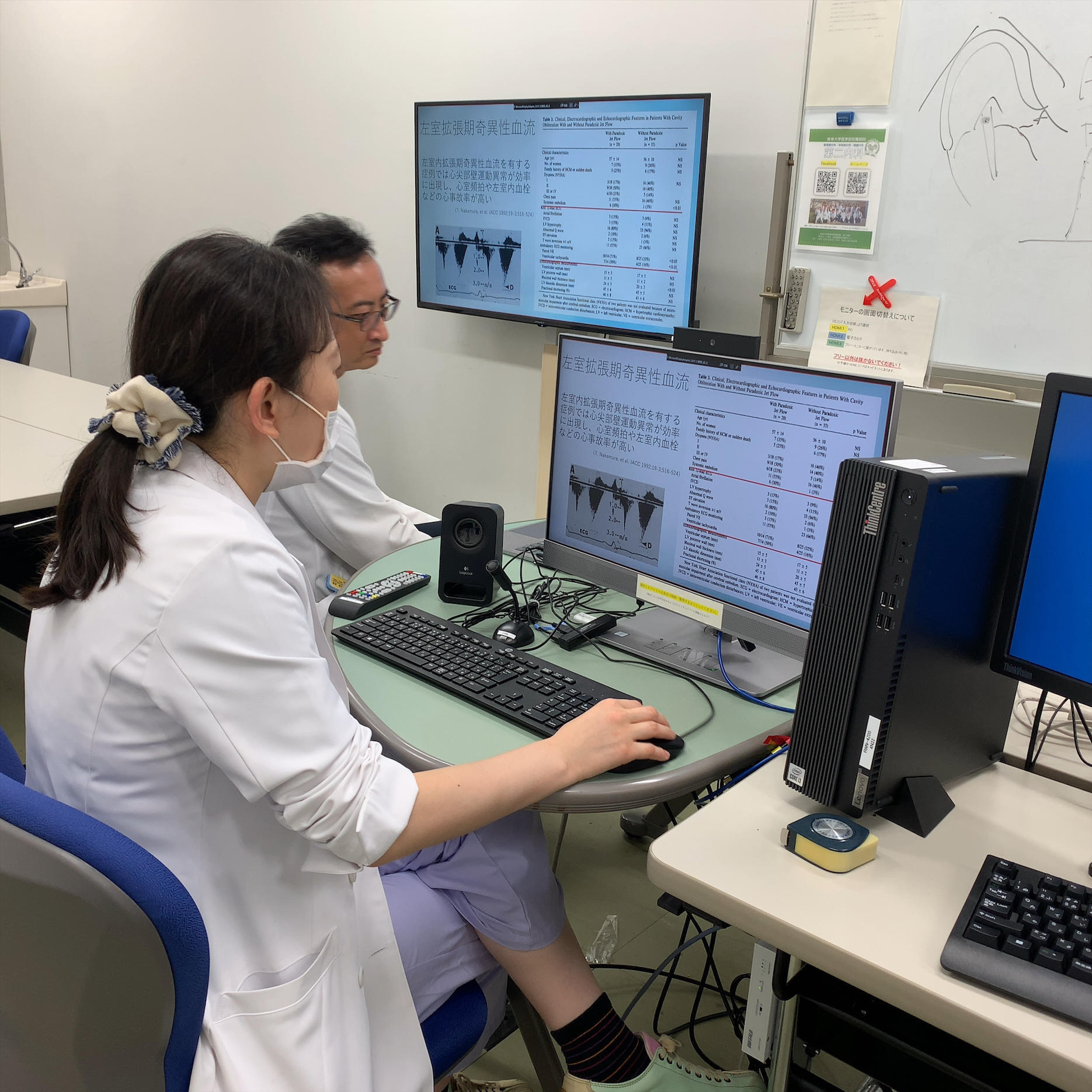 当院 大澤徳子技師より「MVP後におけるGLSの経時的変化」と当院循環器内科 石黒まや先生より「心尖部肥大型心筋症の心エコー評価」についてお話していただきました。