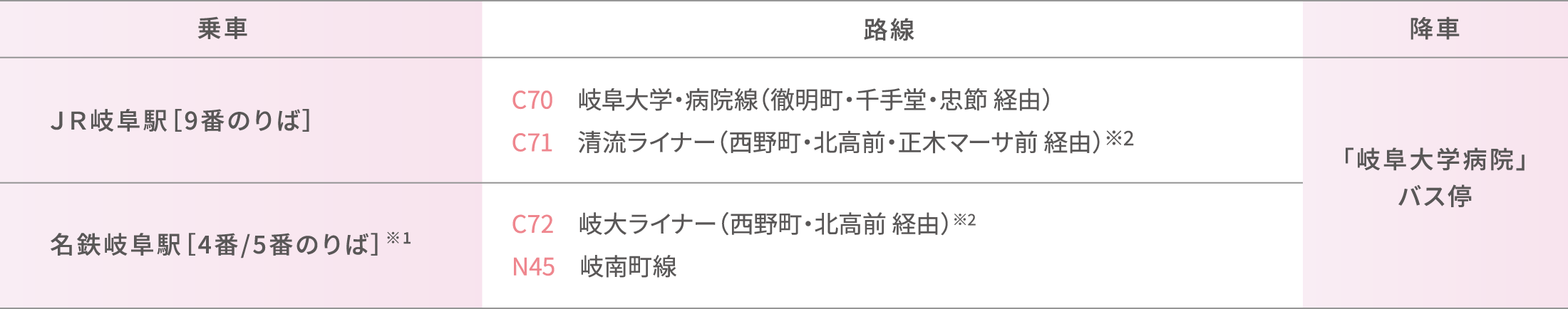※2 清流ライナーおよび岐大ライナーは主要バス停以外には停車しません。出発するバス停や停車するバス停をよくお確かめの上、ご利用ください。