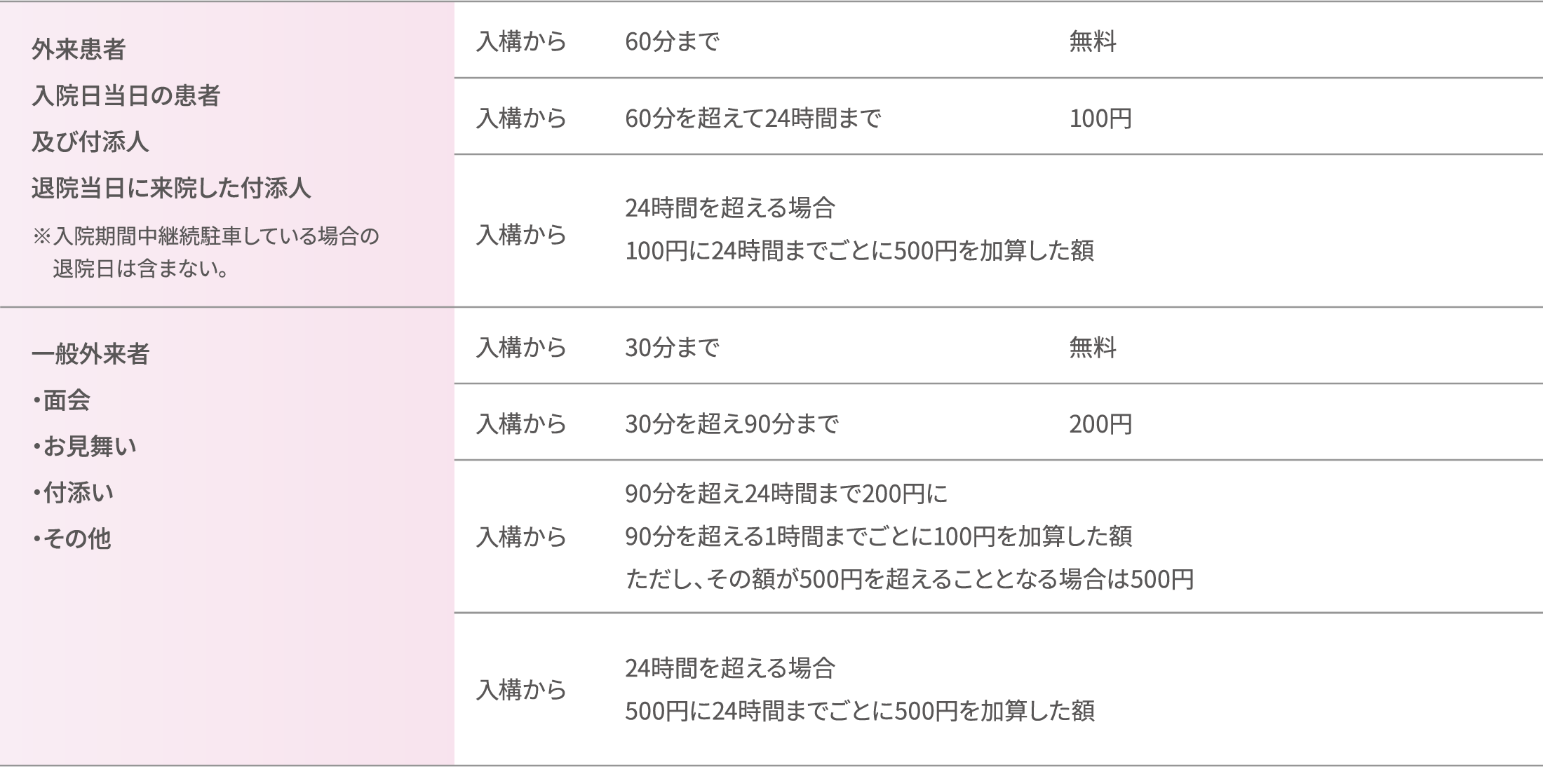 ※利用は24時間可能ですが、入院期間中の駐車は料金が発生しますのでご遠慮ください。