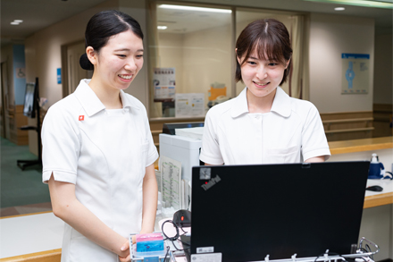 慢性疾患の教育入院、診断して治療開始の入院、がんの手術療法と放射線療法と化学療法、特殊な注射・点滴入院に対し、急性期看護を提供しています。疾患や障害を抱えながら、その人がその人らしく地域で生活と治療が両立できるように、多職種や地域と連携を図りながら支援しています。人工呼吸器を装着しながらの自宅療養、インスリン注射や内服の自己管理など、患者さんの持てる力を大切にした在宅療養支援に取り組んでいます。