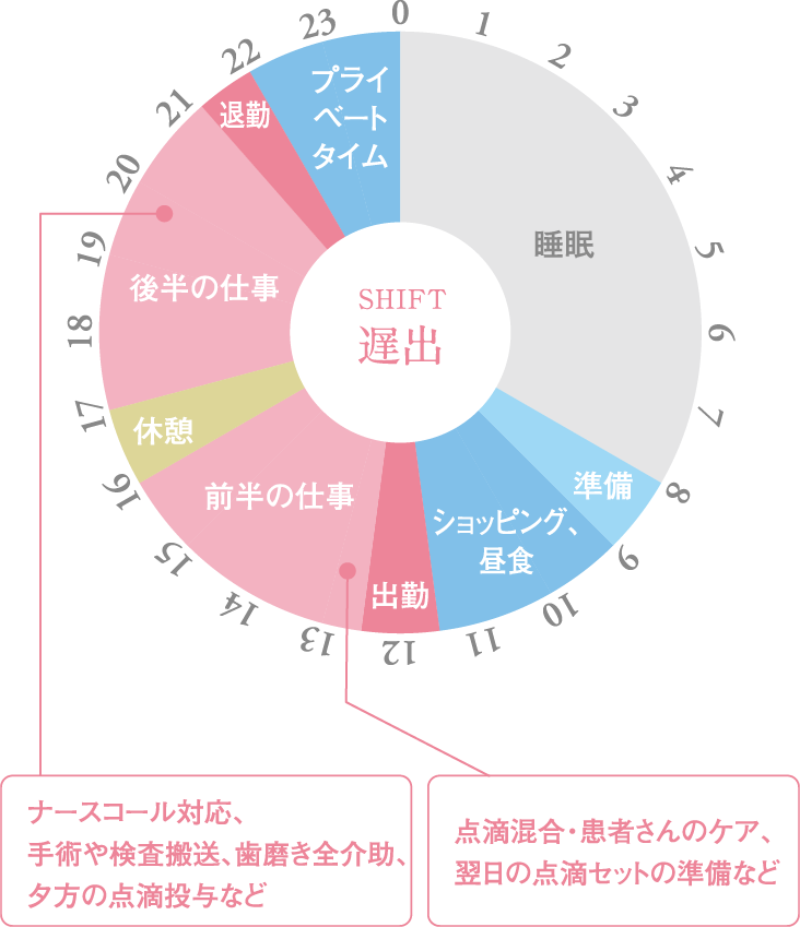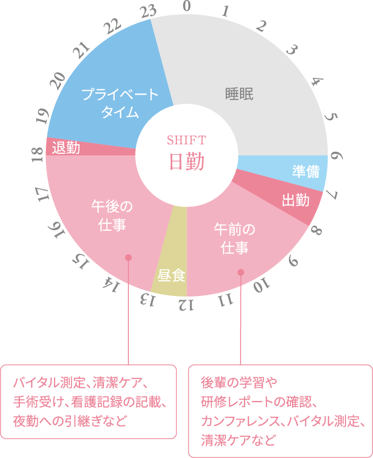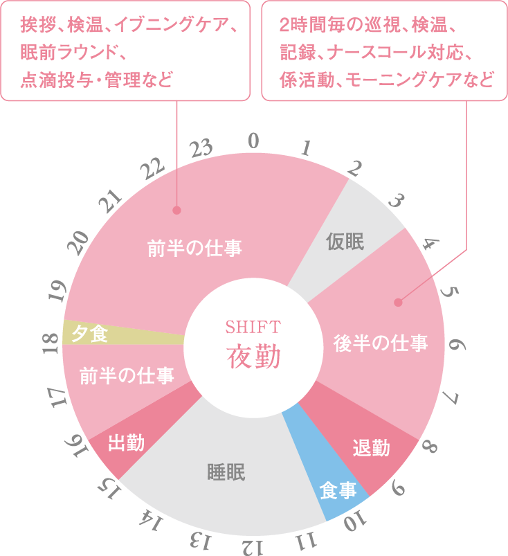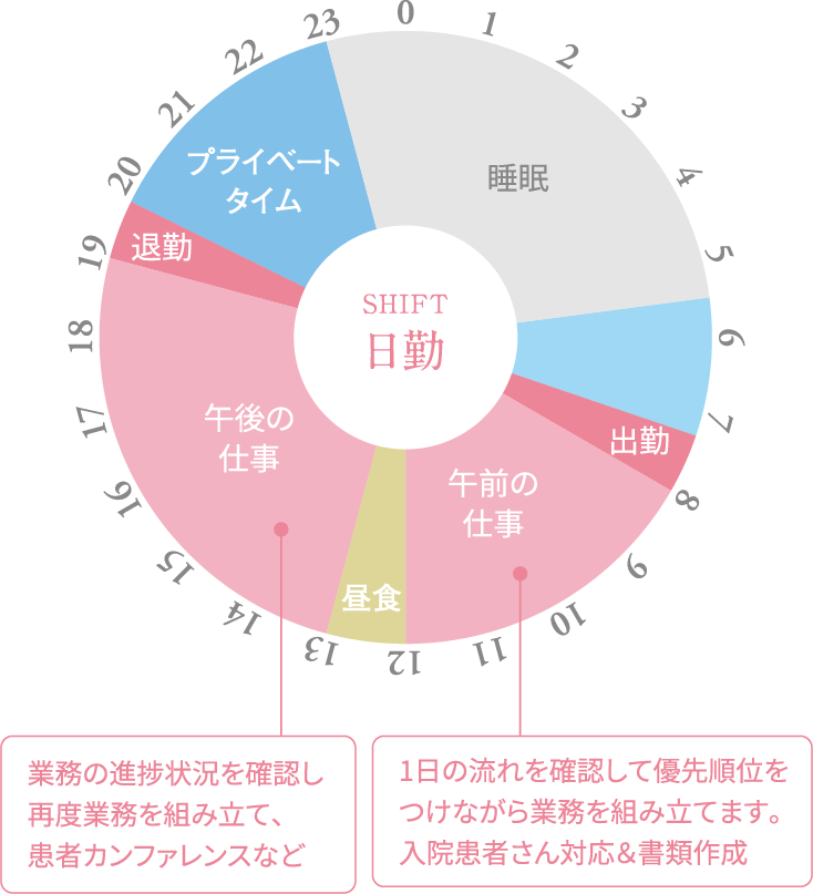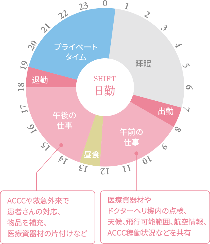 ※このスケジュールは出勤から始まり、翌日15時以降も睡眠時間が確保されております。