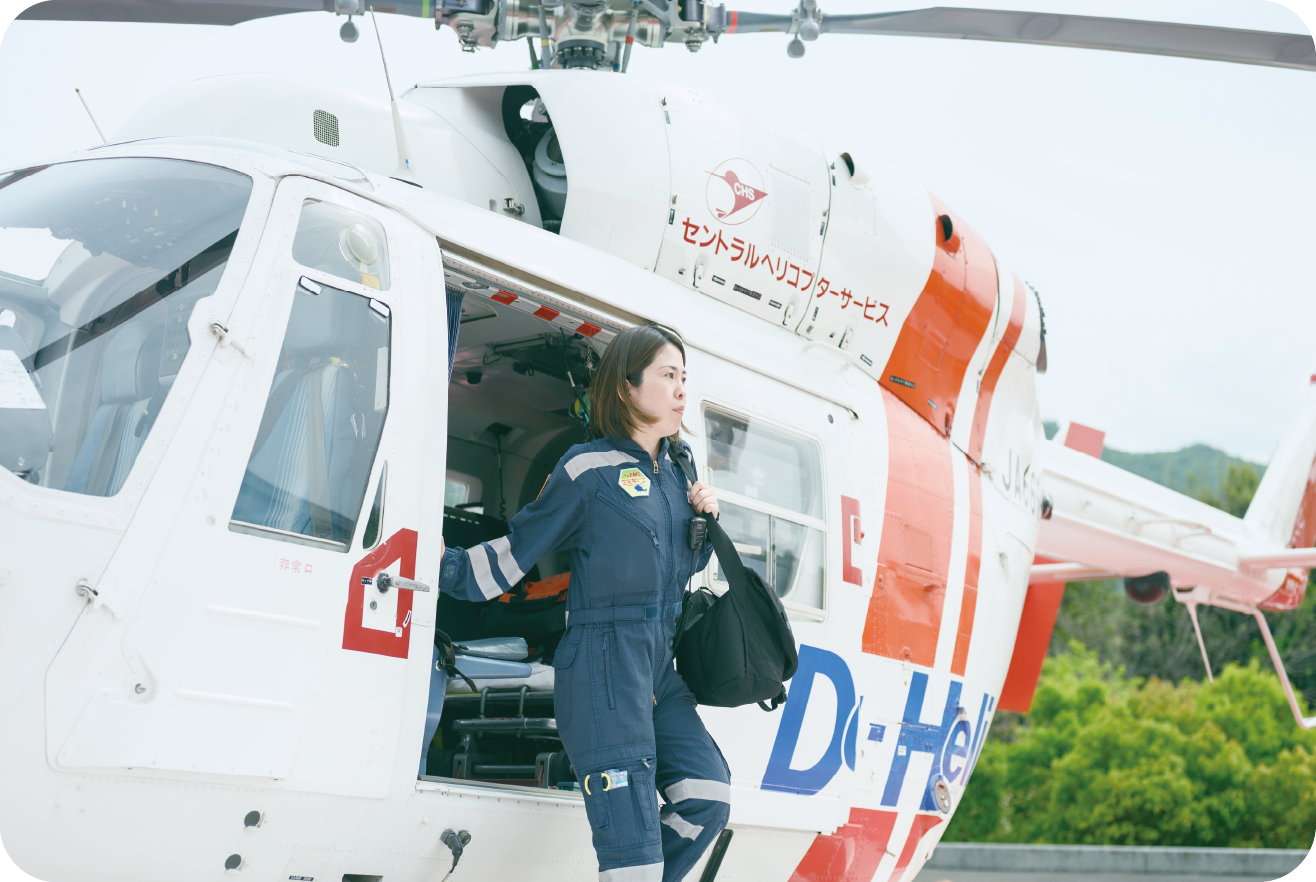 ACCCは高度救命救急センターを担う部署で、幅広い学習が必要です。私は看護学生の時に「コードブルー」のドラマを見て、いつかフライトナースになりたいという目標がありました。その目標があったから、辛いことや大変なことがあっても乗り越えられたと思います。