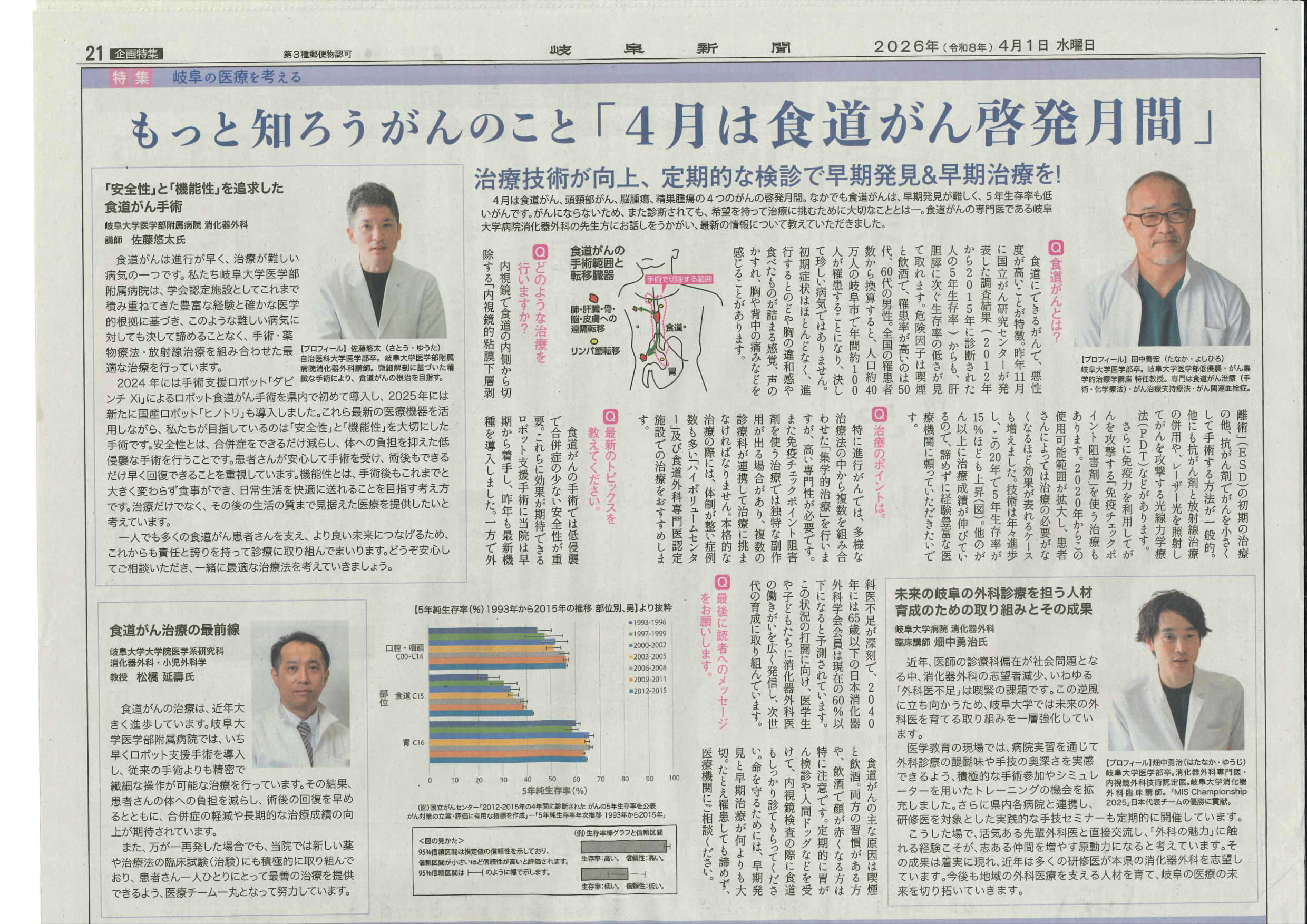 2026年4月1日(水) 岐阜新聞掲載「4月は食道がん啓発月間」